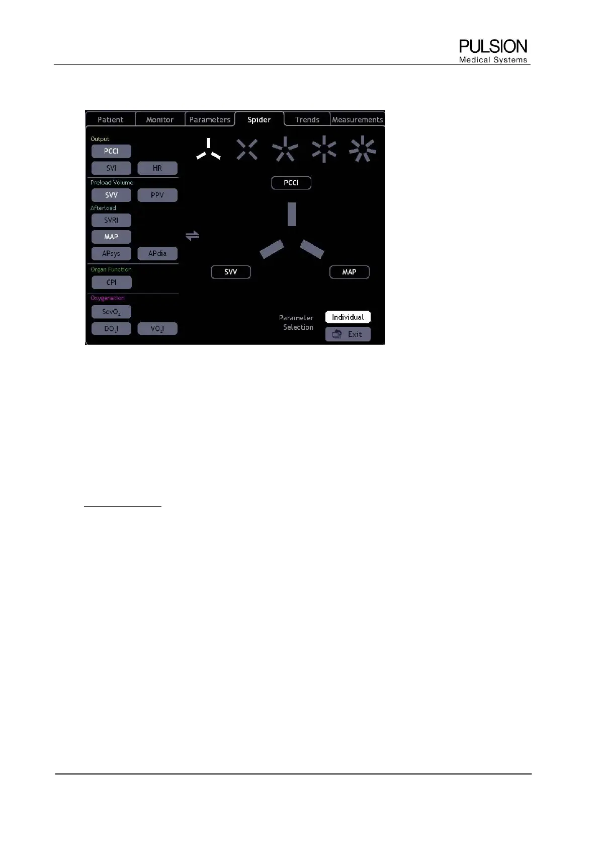 The spider configuration can be opened by direct selection of the spider diagram.