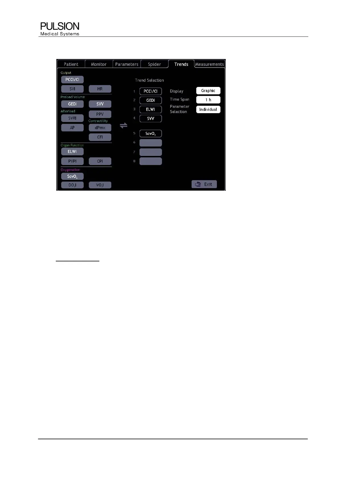 The trend display can be configured individually. A maximum of 8 parameter trends can be displayed.