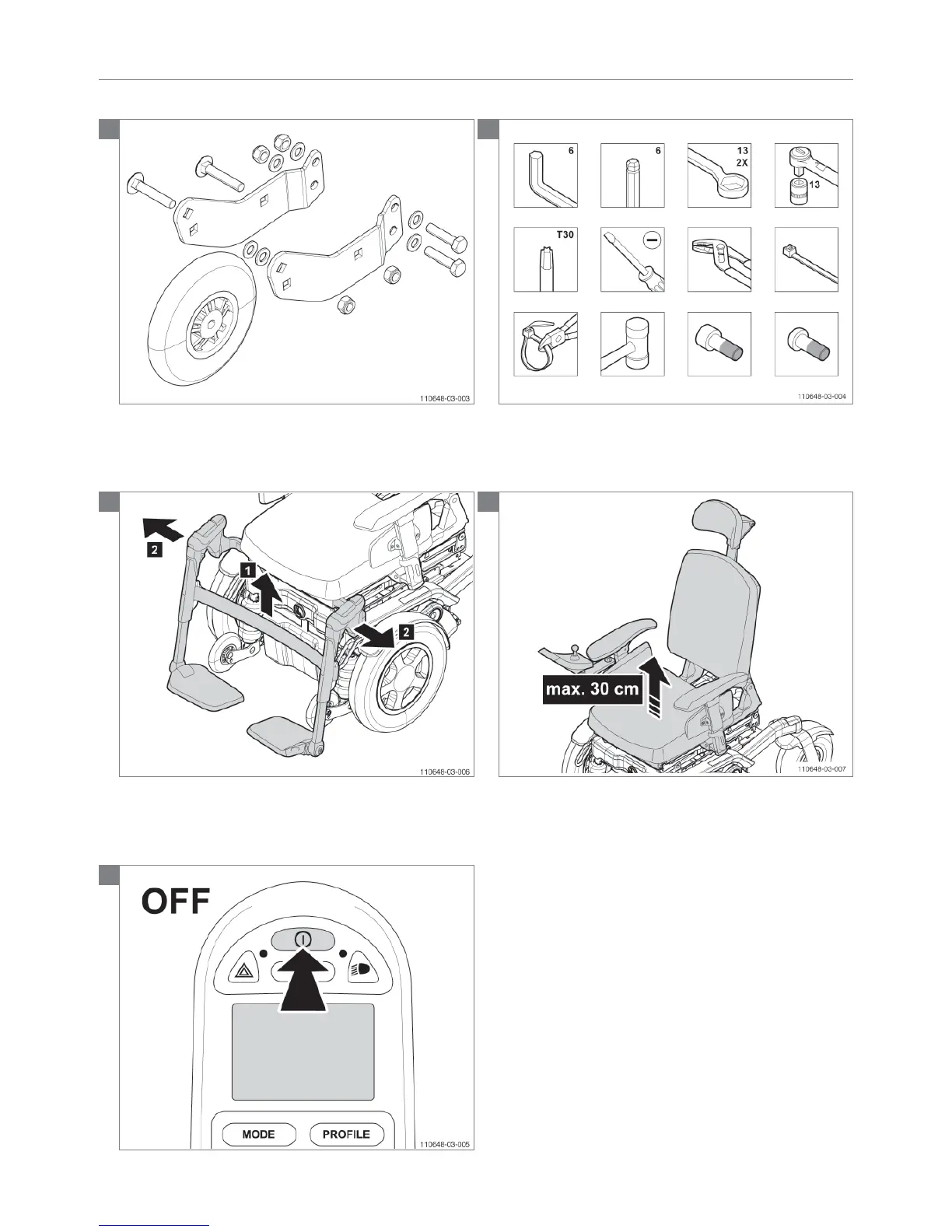 Note! Lift the chair in case the wheel chair has an electrical lift.