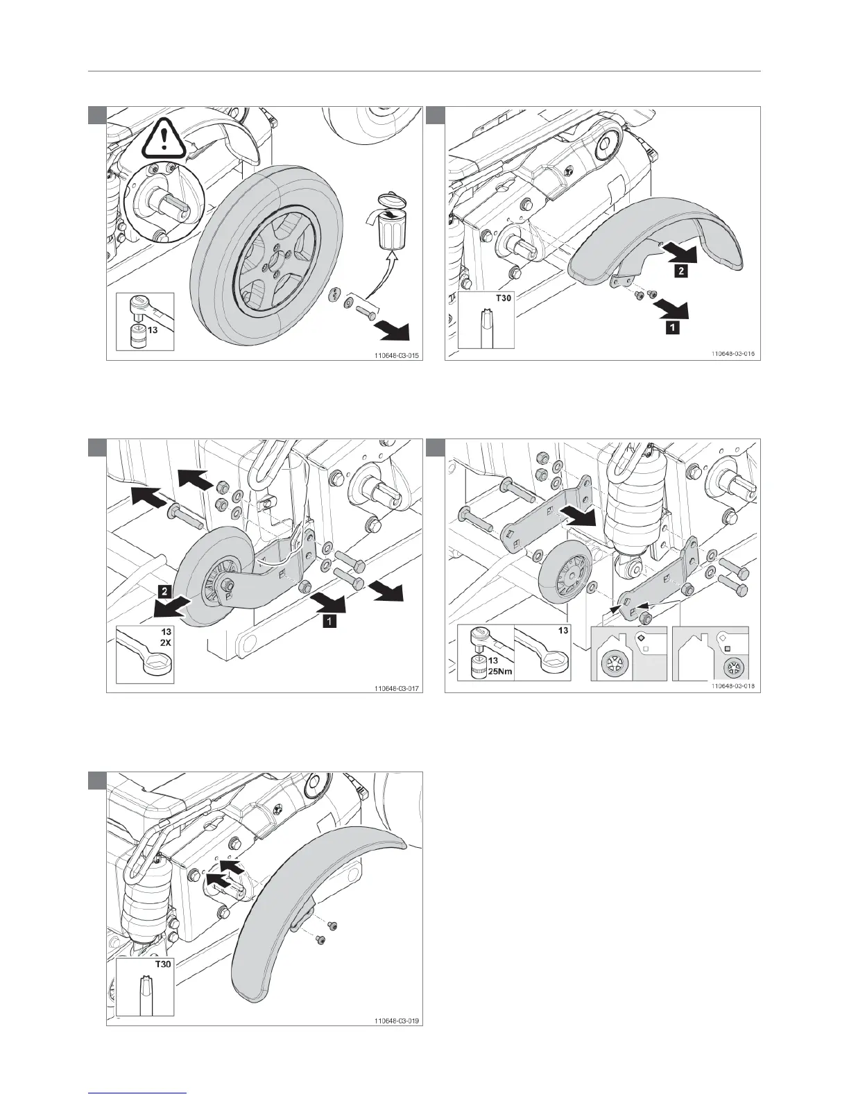 Note! Tighten the bolts of the anti-tip wheels and brackets with 25 Nm!