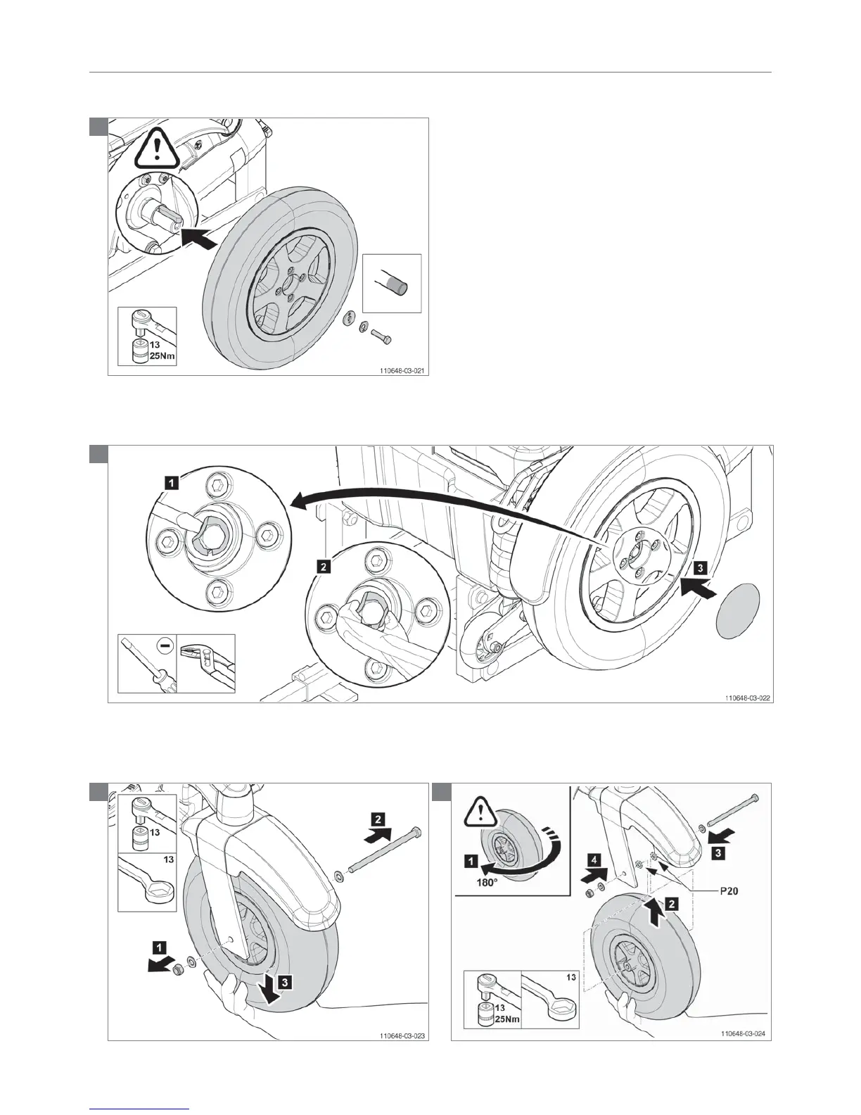 Note! Tighten the bolts of the drive wheels with 25 Nm!