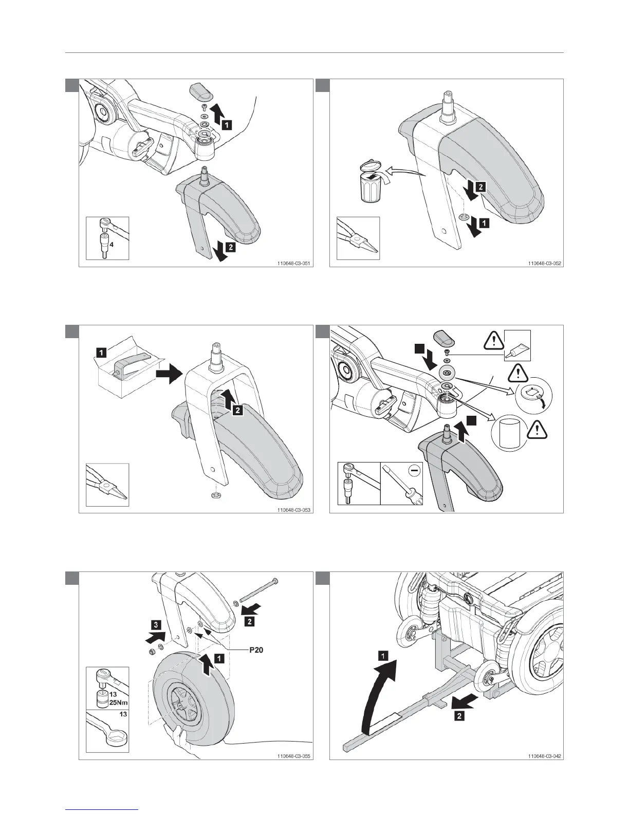 Note! Tighten the shaft and nut of the castor wheels with 25 Nm!