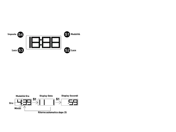 visualizzazione dell’ora e della data. Premere S1 per visualizzare il