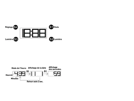 puyer sur S1 pour afficher les secondes de l’heure. Appuyer sur S4