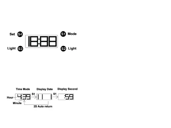 Second. Press S4 to reset Second to “00”. Press S1 to go back to