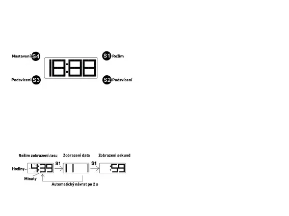 vpravo minuty. Stisknutím tlačítka S1 zobrazíte datum. Po uvolnění