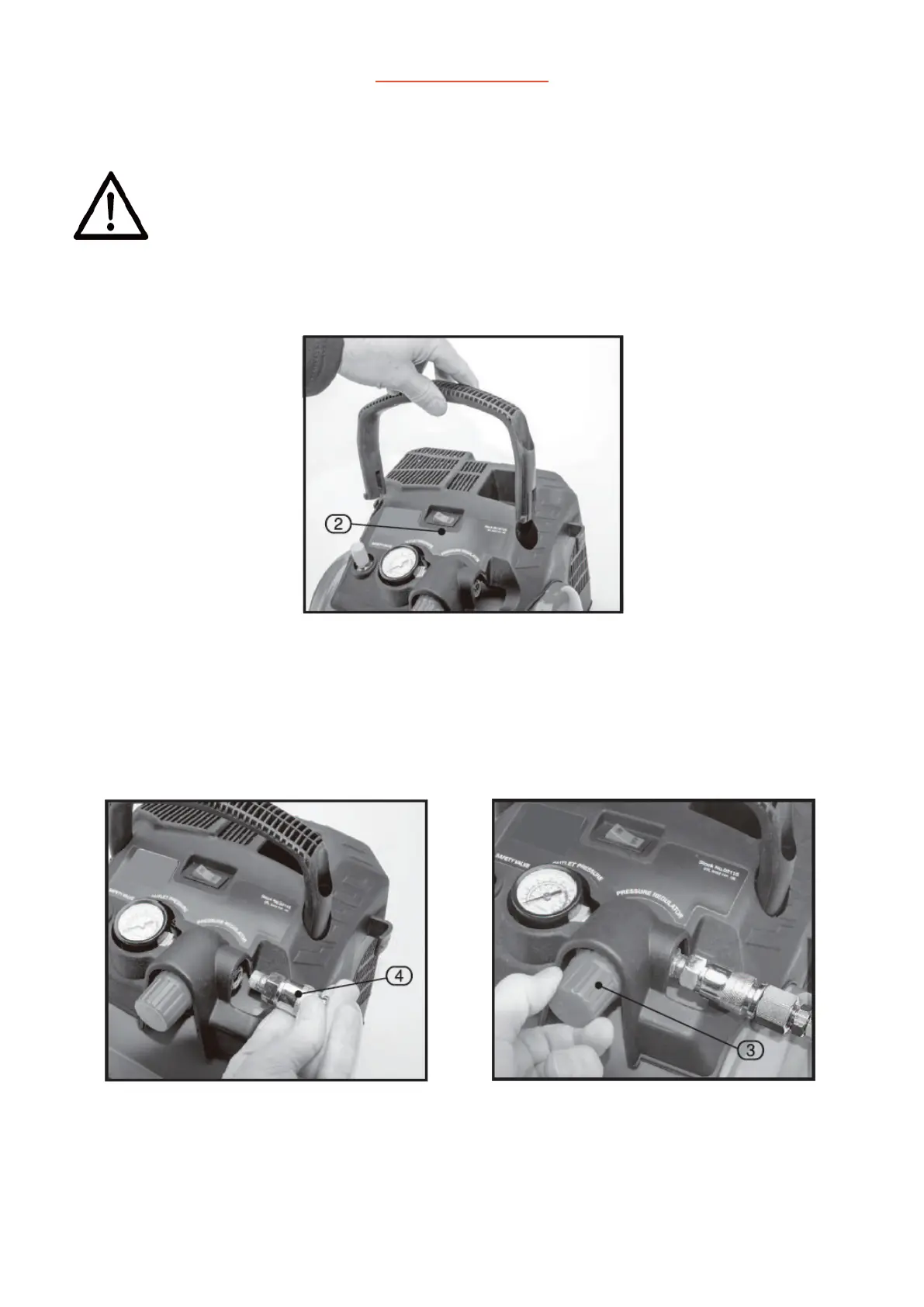 ATTENTION ! Assurez-vous systématiquement que l’interrupteur du compresseur (2) est en