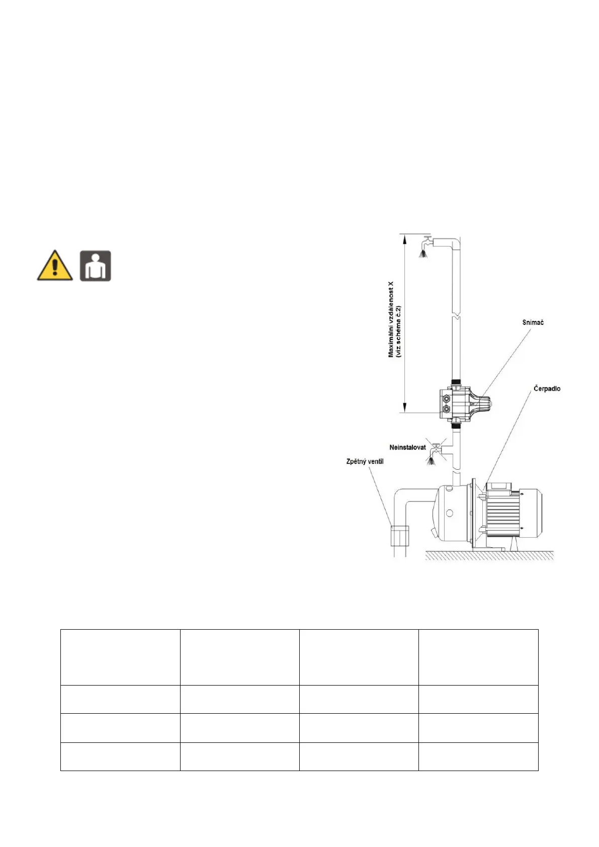 4. Jednotka musí být nainstalována přímo na výtlaku