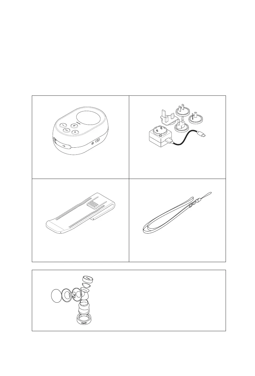 Pumpables GENIE ADVANCED - Whats Included in the Box; Genie Advanced Pump Unit; International Charging Kit; Pump Belt Clip Accessory