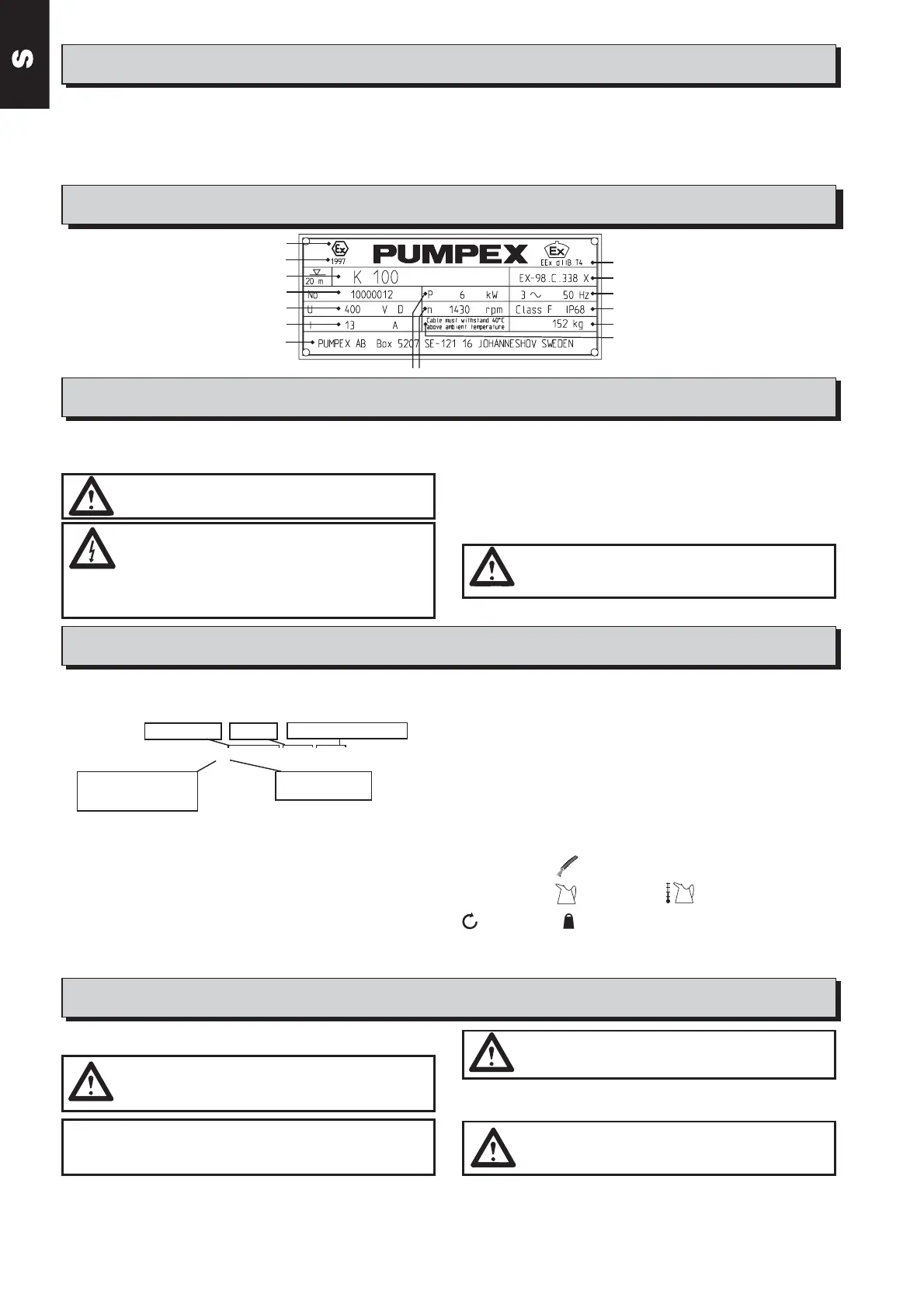 VARNING! Pumpen får användas i zon 1 & 2 och för gaser