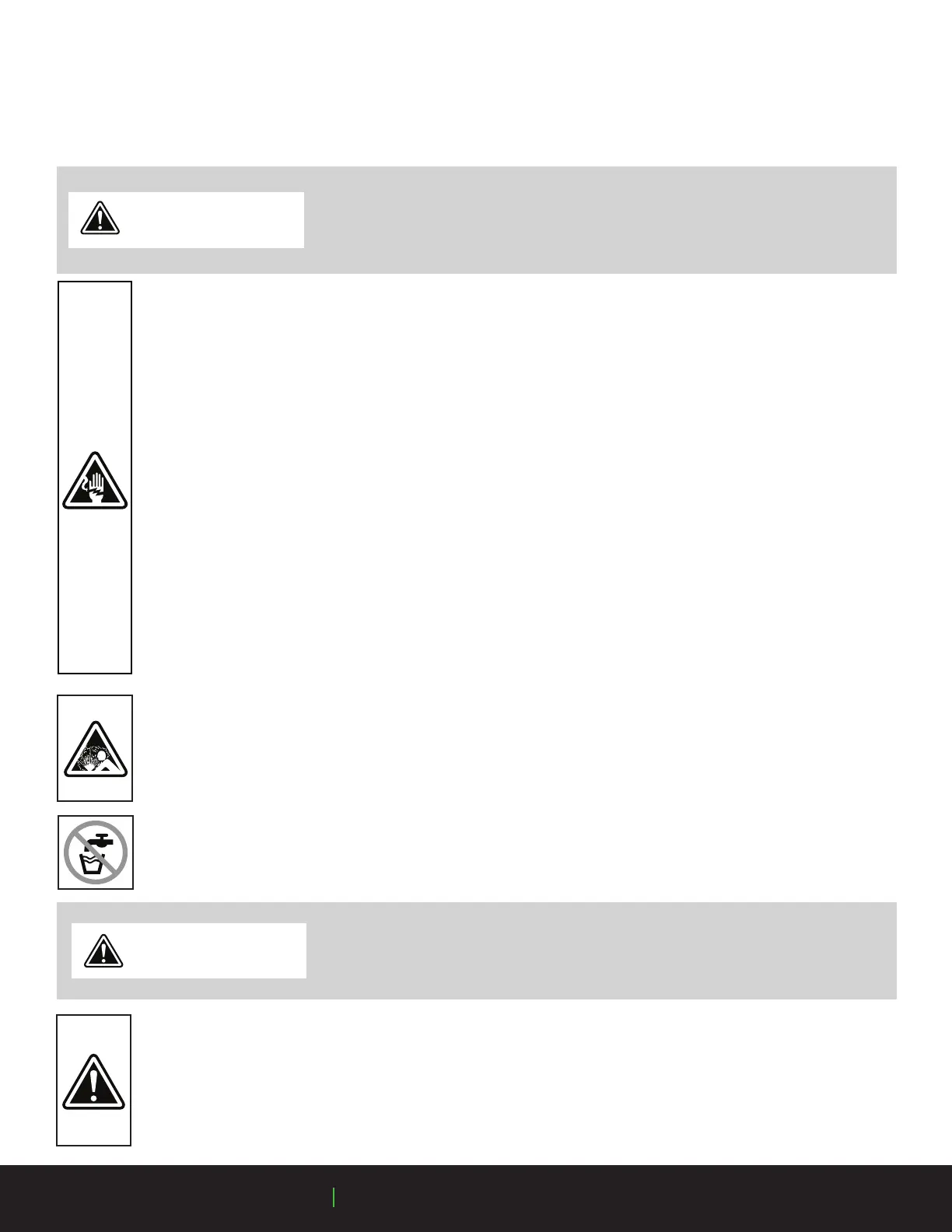 WARNING! Do not use to pump ammable or explosive liquids such as gasoline, fuel oil, kerosene, etc.