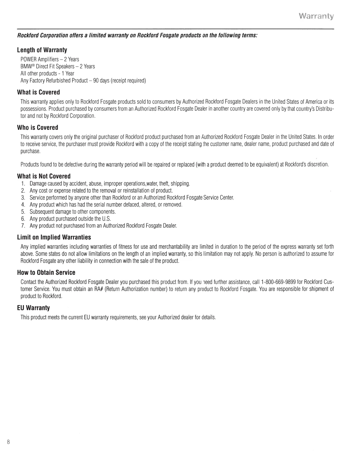 punch P2 - Warranty Information; Warranty Coverage Details; Warranty Exclusions; Implied Warranties and Service
