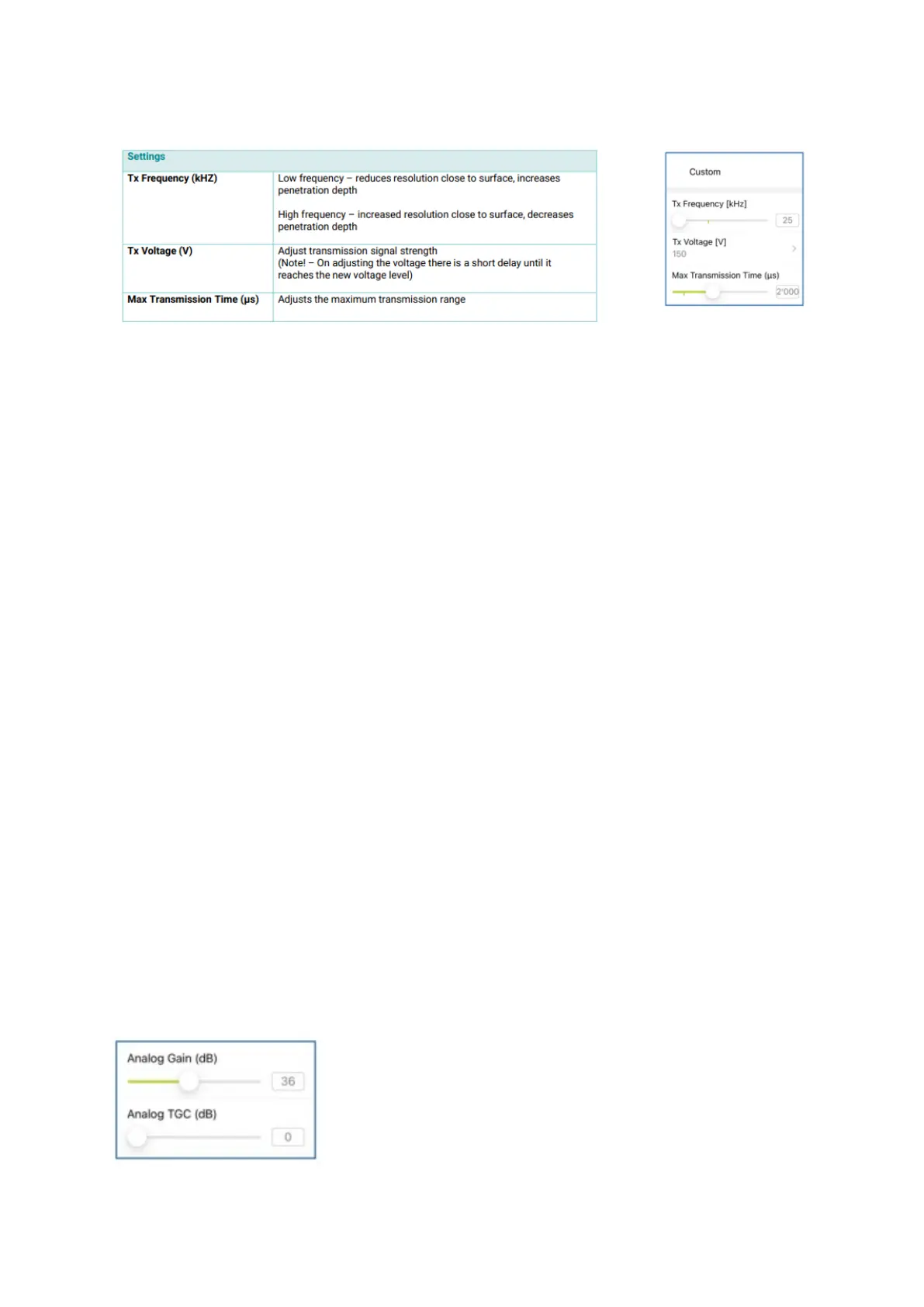 Figure 23: Analog Gain and TGC sliders.