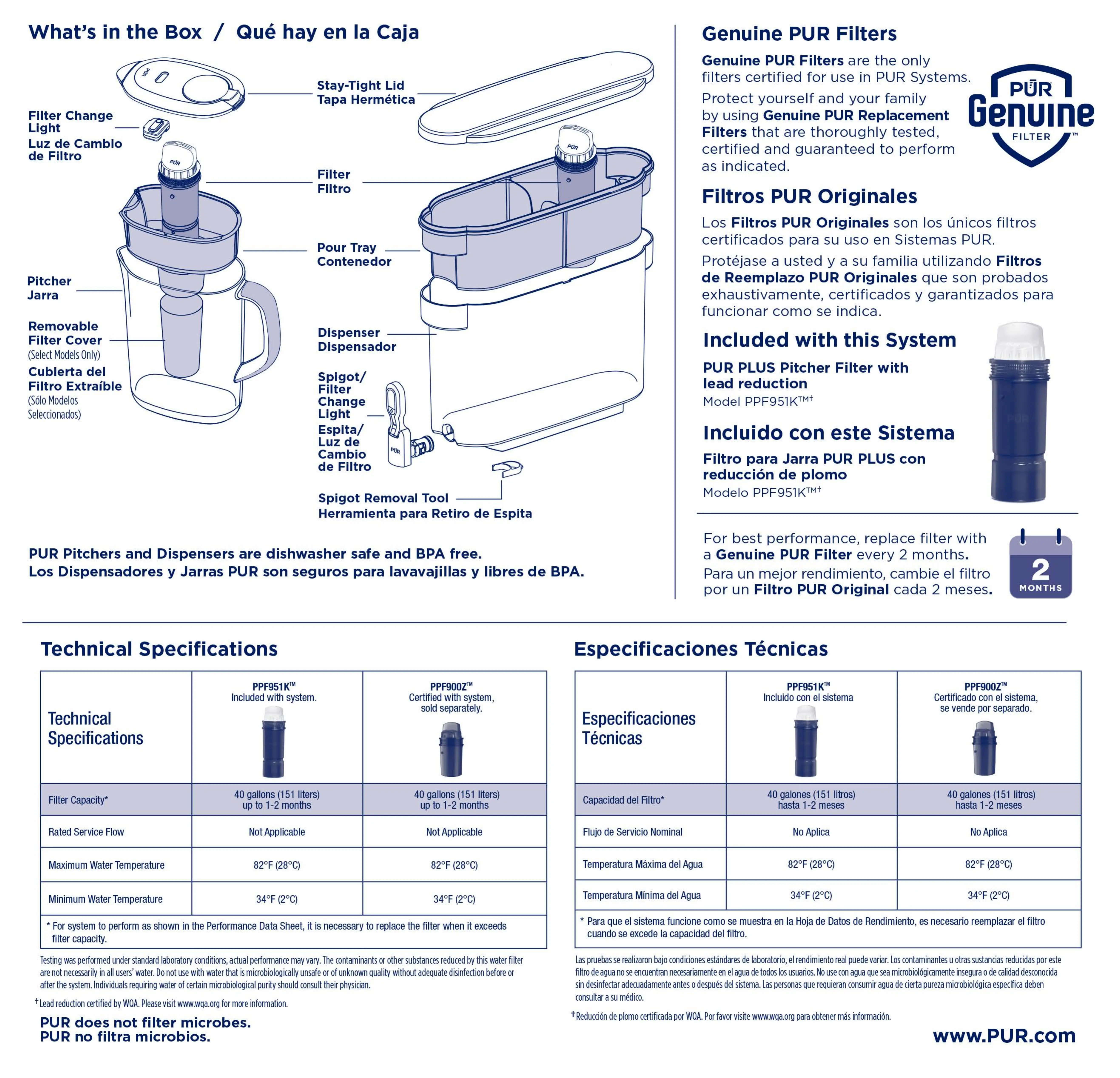 PUR Pitchers and Dispensers are dishwasher safe and BPA free.