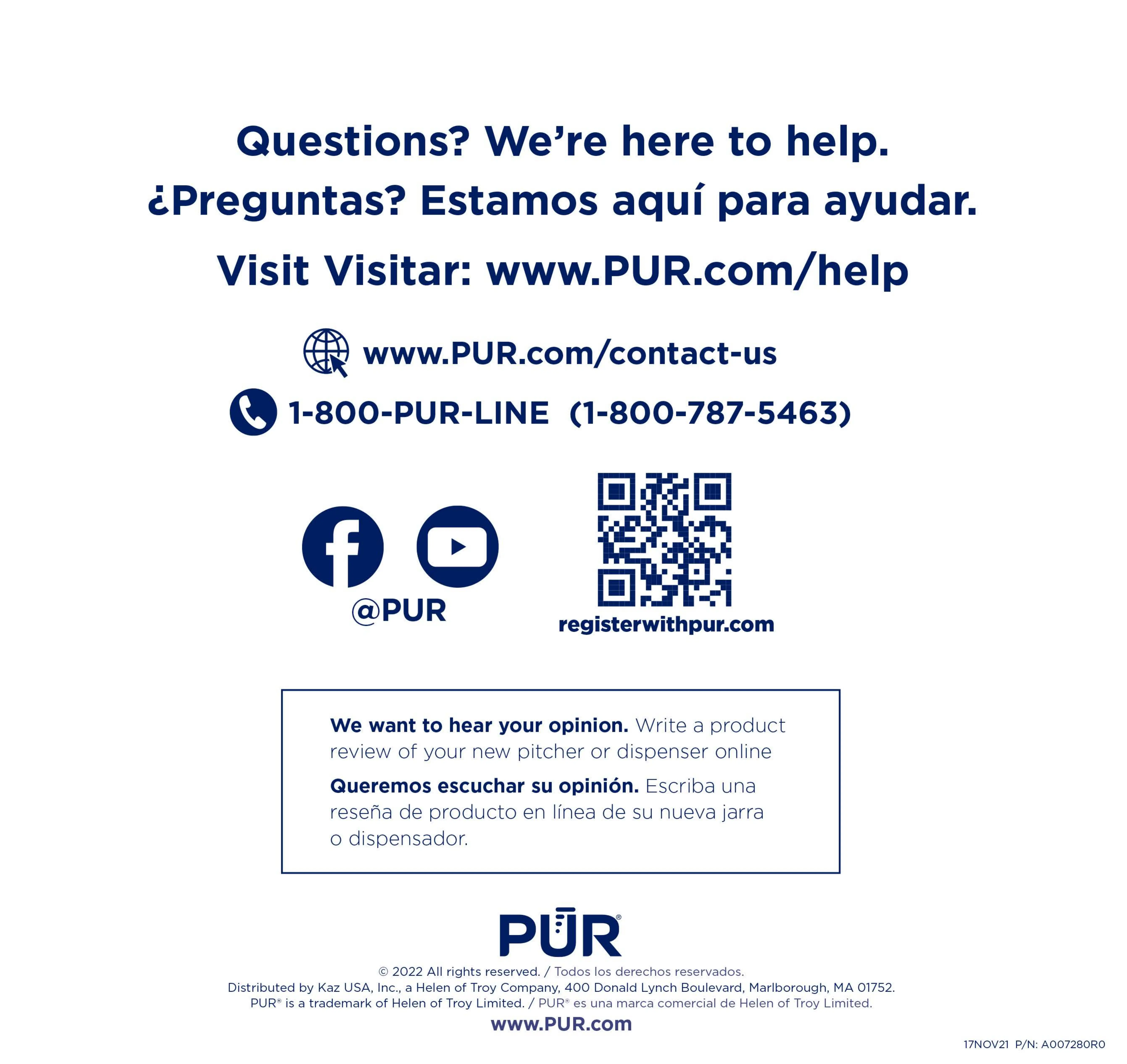 Pl.JR@is a trademark of Helen of Troy Limited. / PUR• es una marca comercial de Helen of Troy Limited.