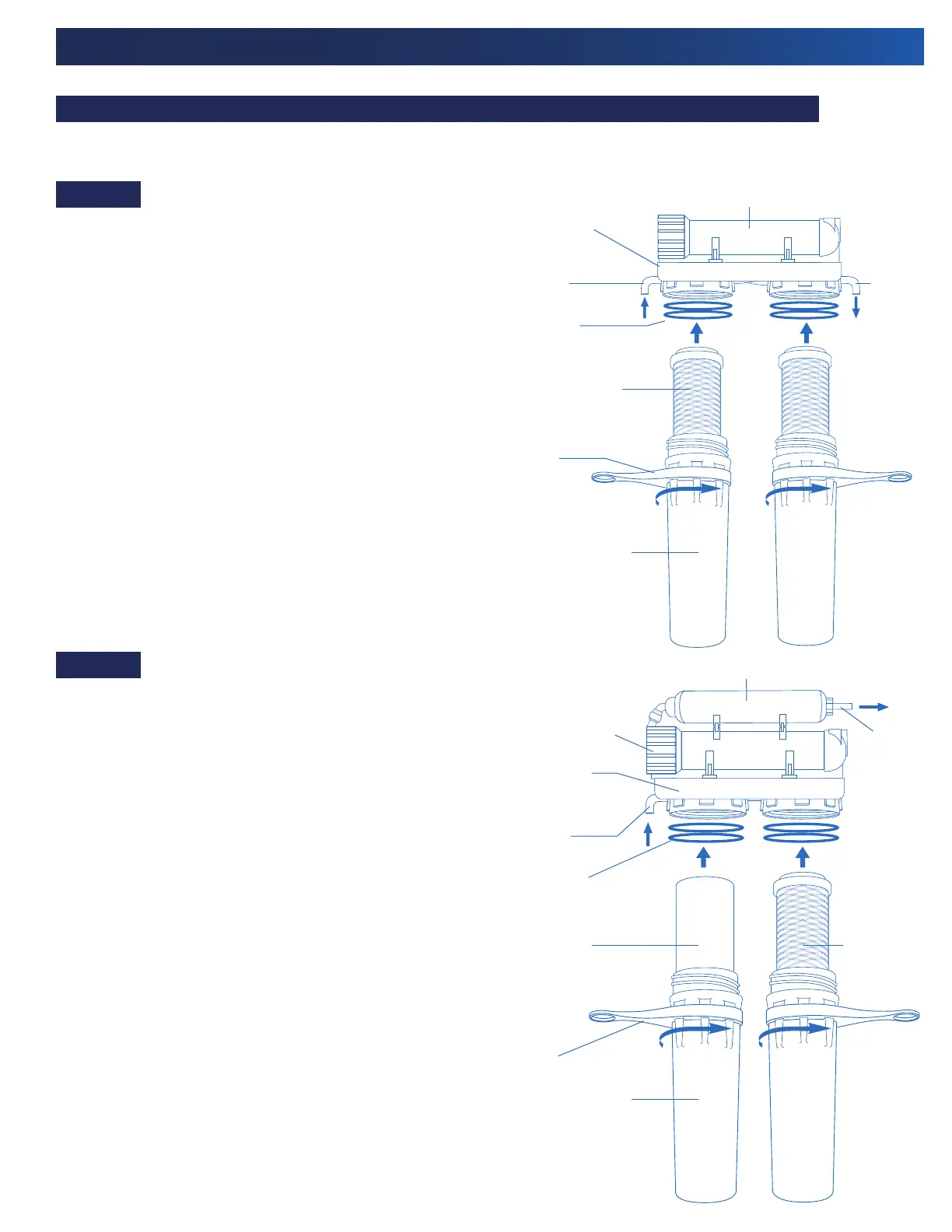 Installation des cartouches de filtre et de la tête du boîtier de filtre (voir les figures 10 ou 11) :