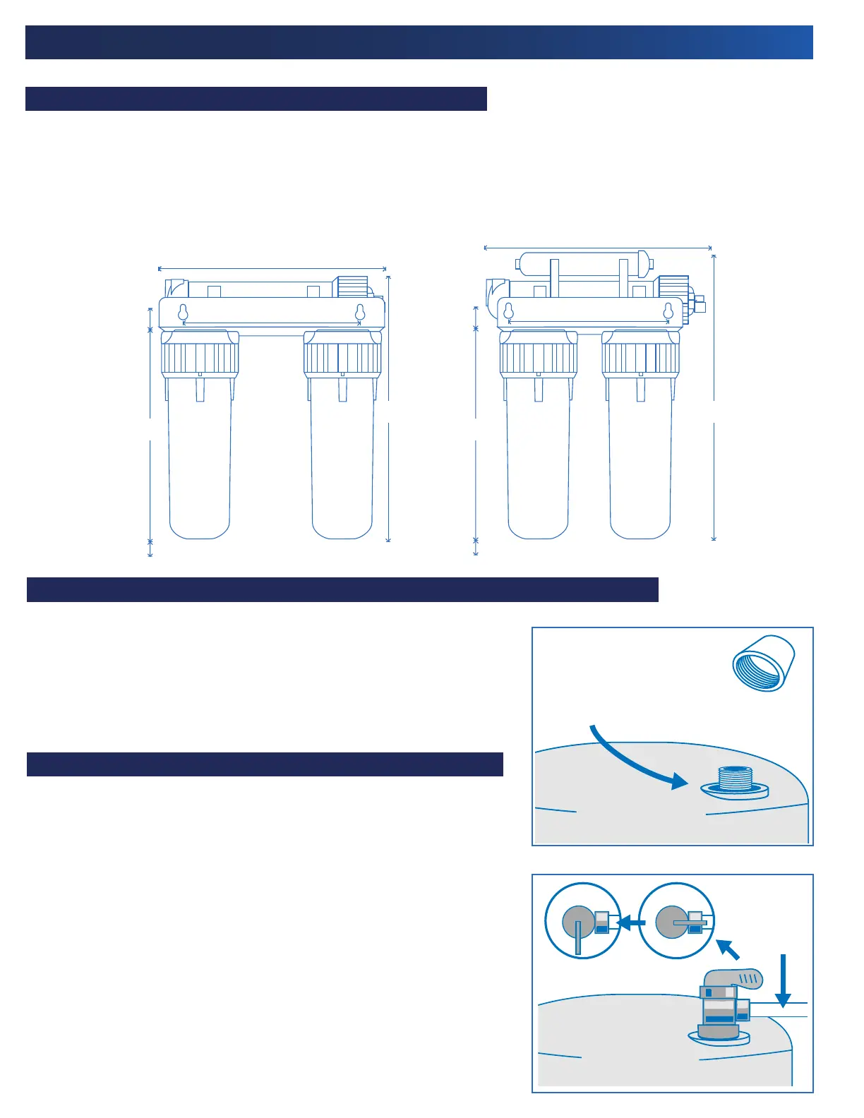 espacio para la instalación y conexiones de fontanería. Para cambiar los cartuchos del filtro se necesita 1” de espacio libre