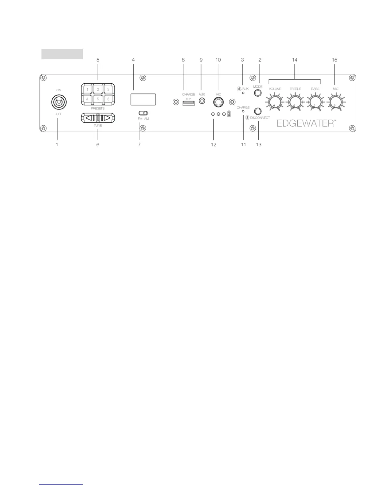 14. Master volume, Treble and Bass control knobs allow you to adjust the sound to your own
