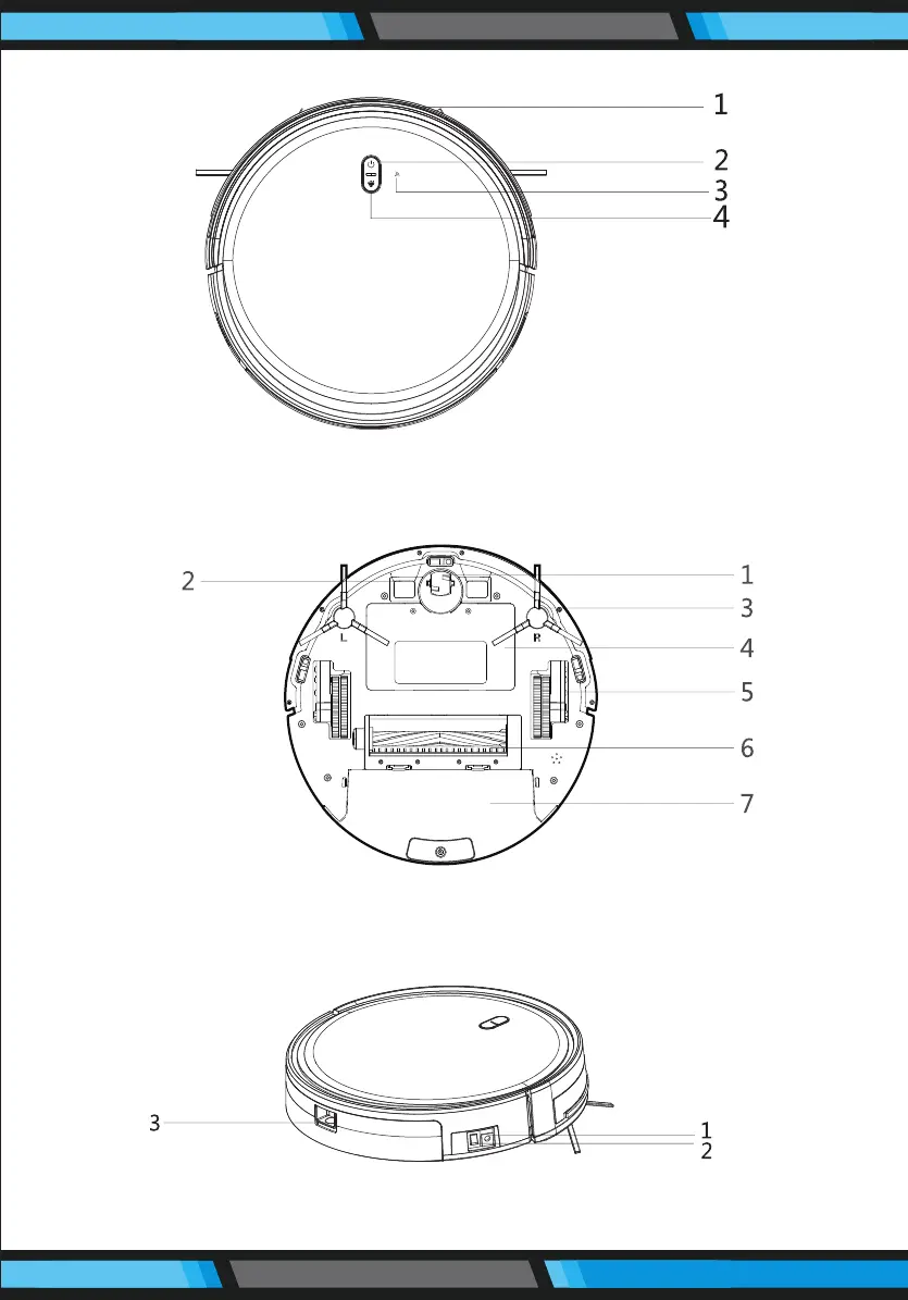 1. Universal wheel 2. Electrode slice 3. Side brush 4. Battery cover