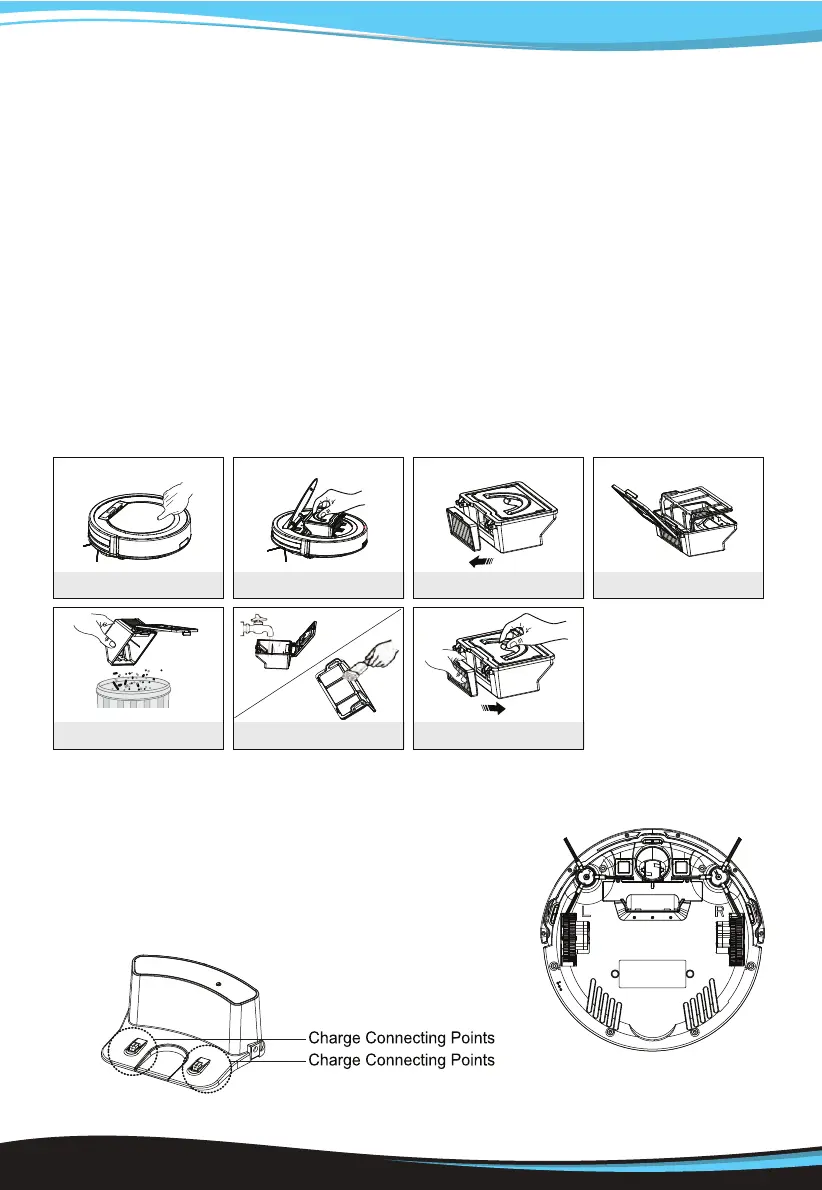 Clean and empty dust bin after each use, steps are as shown in below figures.