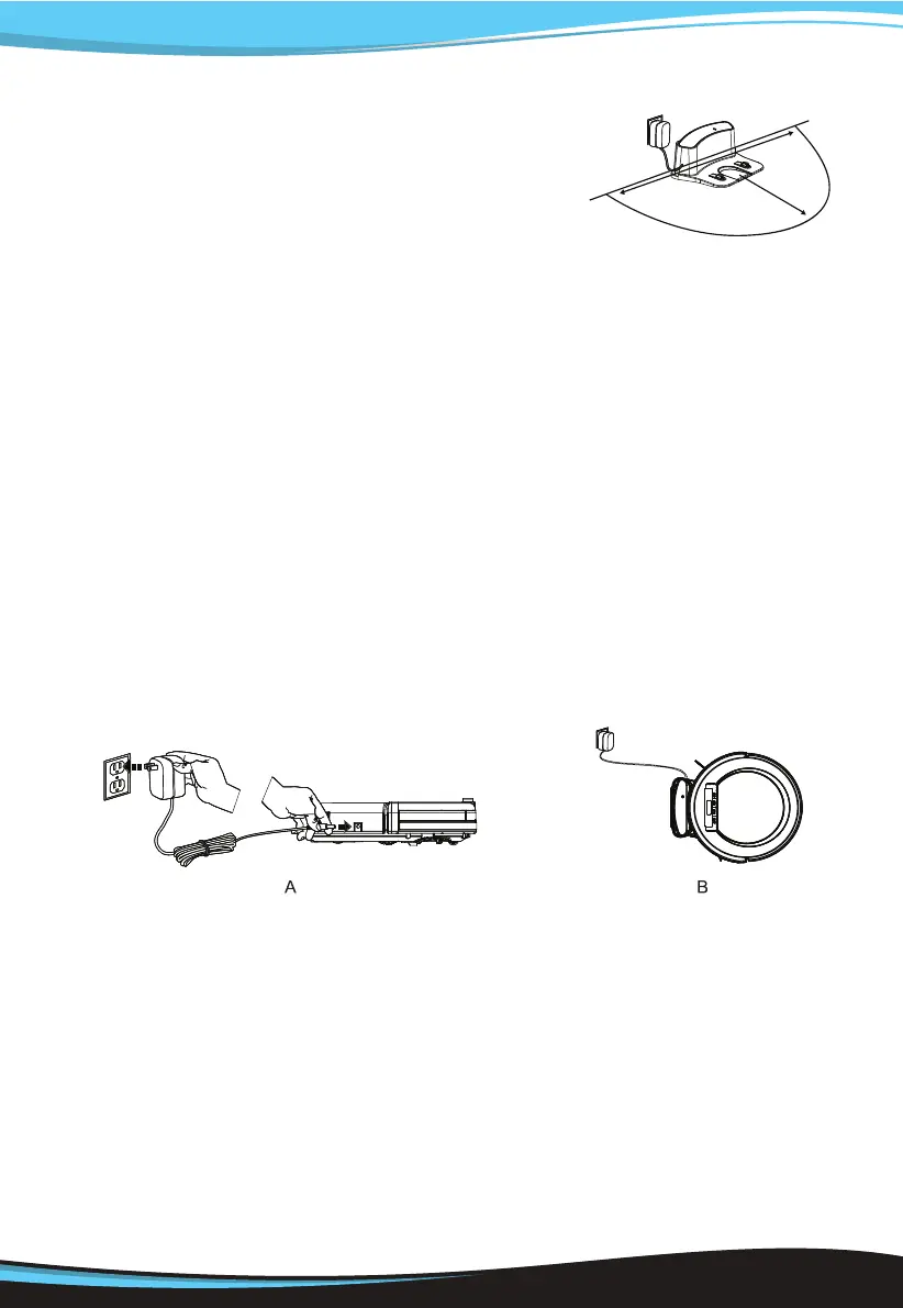 1. Place charging home base, plug in adapter,