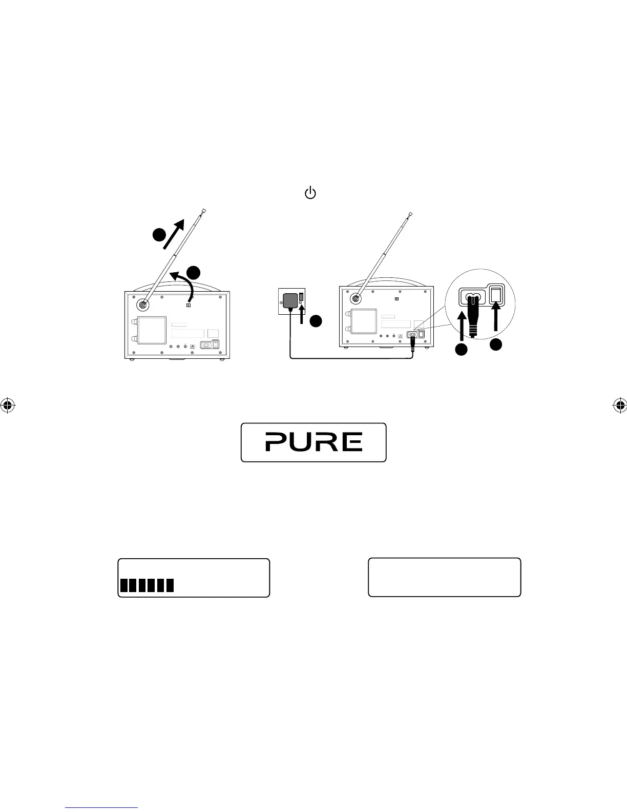 • Insert the supplied mains cable into the socket on the rear of the radio (C).
