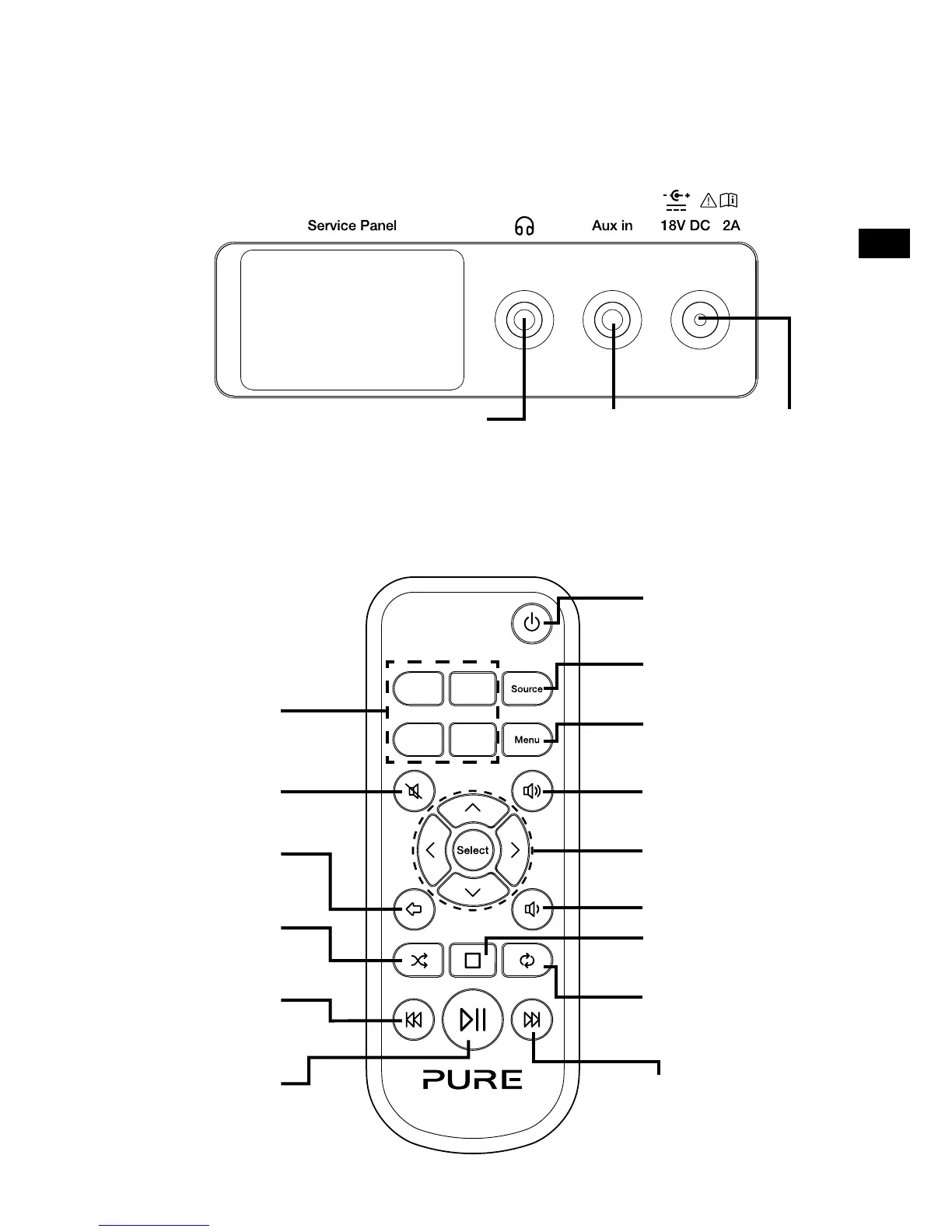 FM-radio, Bluetooth, aux-ingang