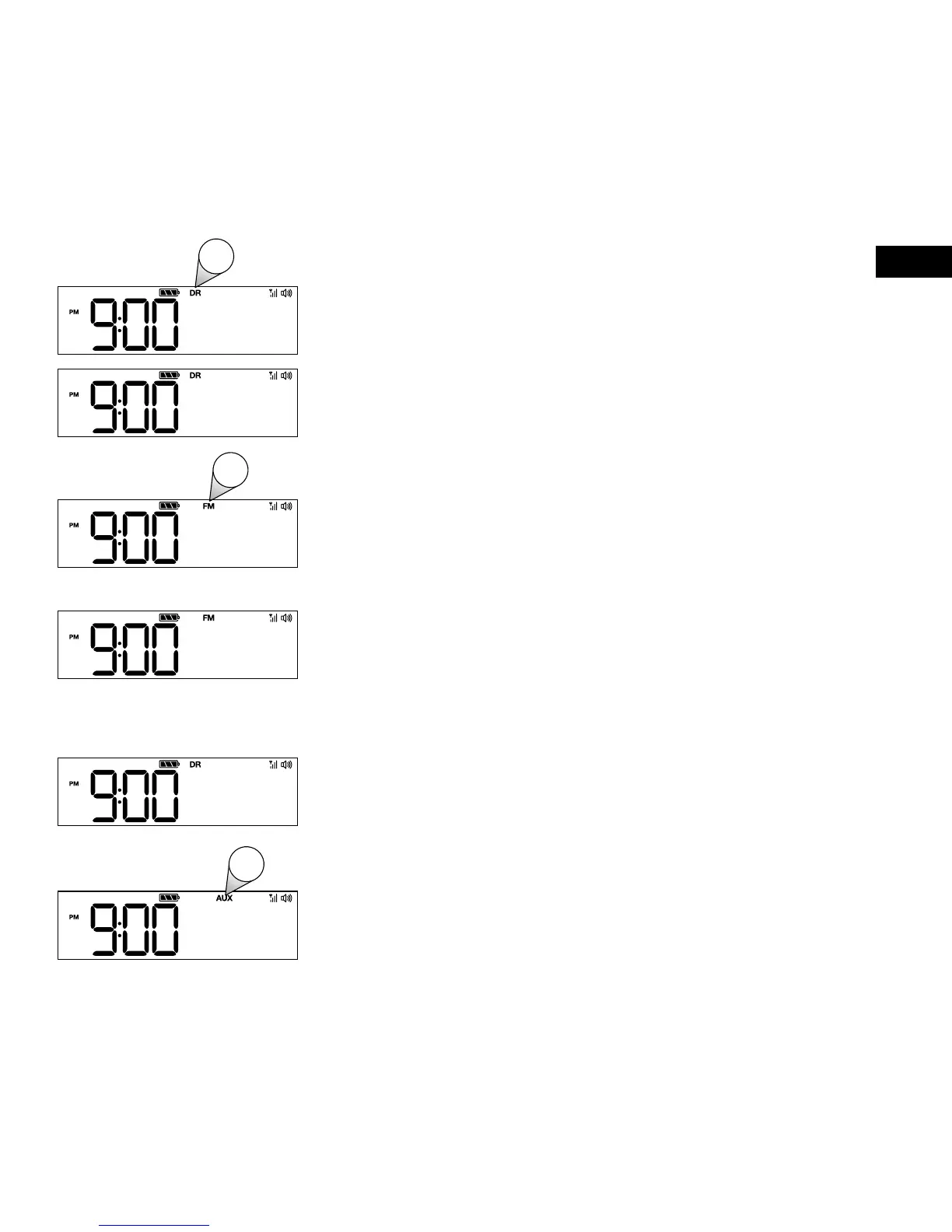 3. Die Anzeige zum AUX-Eingang erscheint, und das Evoke gibt die Audiodaten