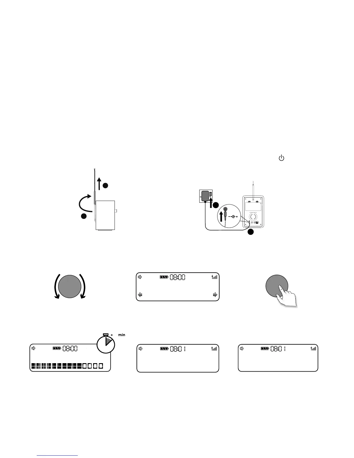 • Stecken Sie den Stecker des mitgelieferten Netzteils in die Buchse auf der Rückseite des Radios (C).