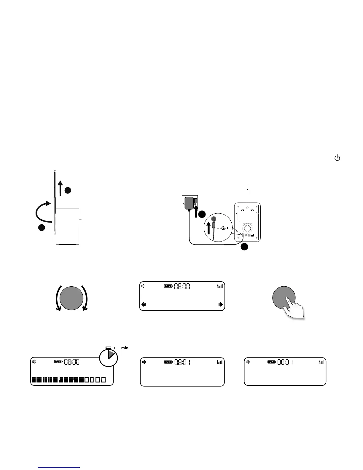 • Insérez la fiche de l’adaptateur secteur dans la prise correspondante à l’arrière de la radio (étape C).