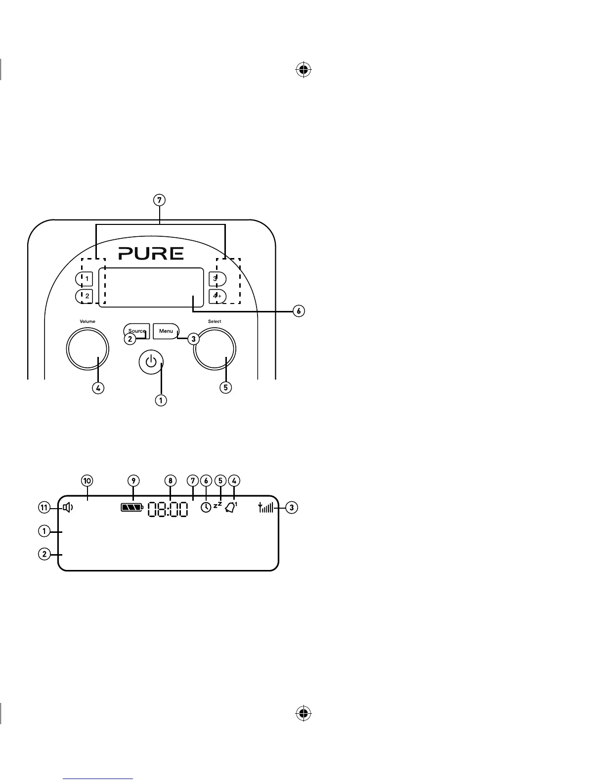 6. Sleeptimer- og køkkenursindikator (se page 10).