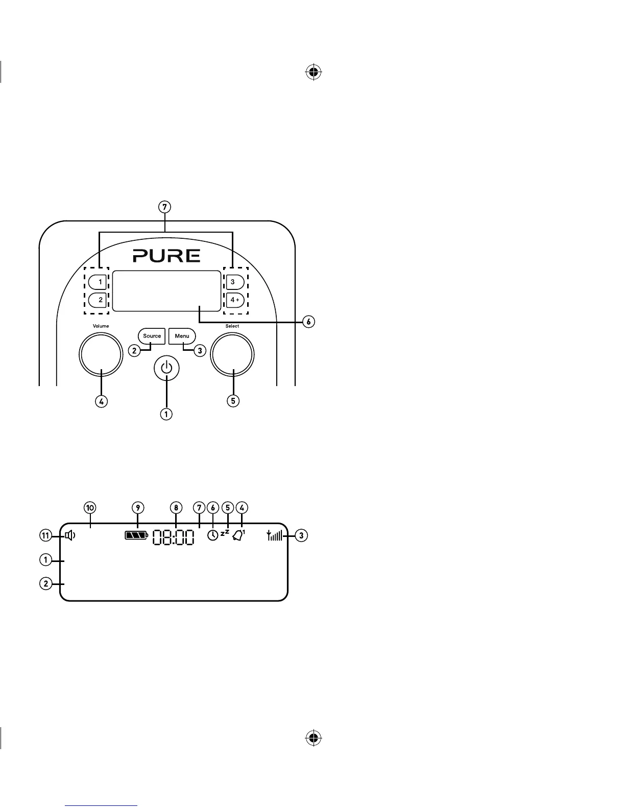 7. Presets 1 - 4+: Store up to 10 digital or 10 FM radio