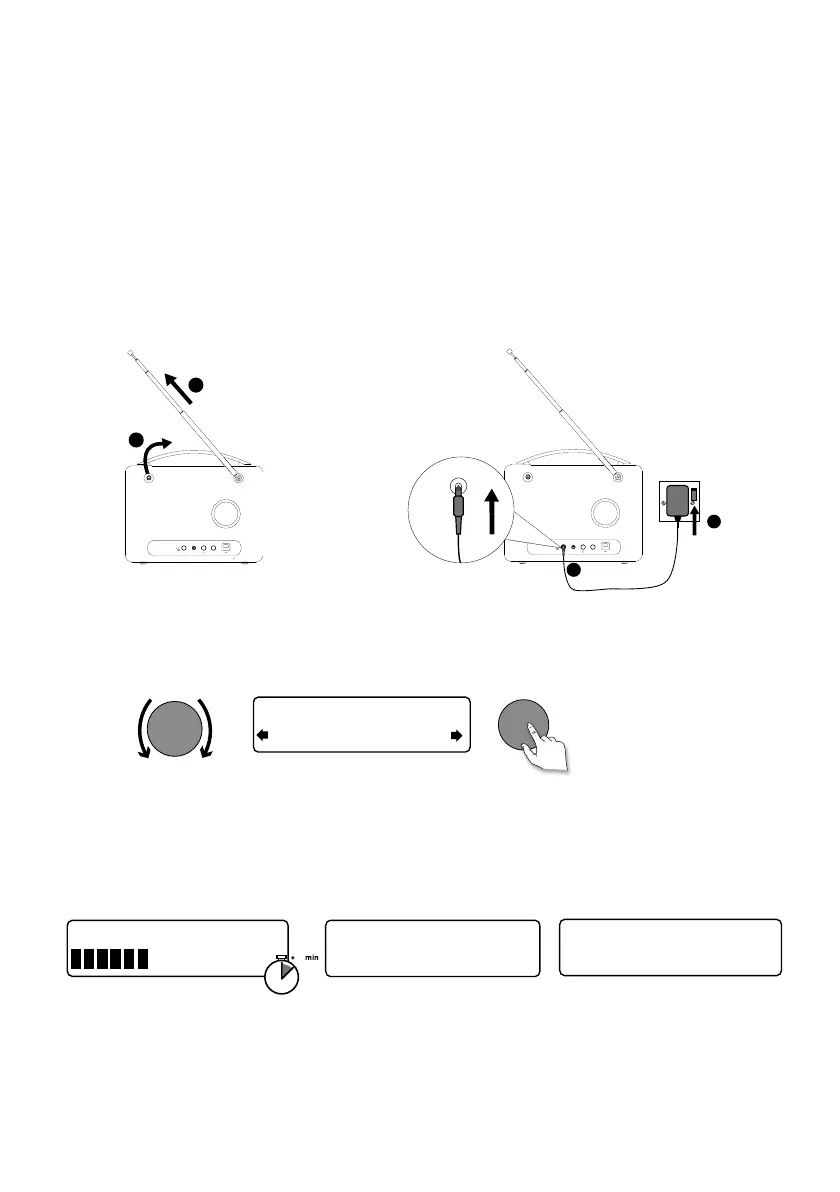 • Insert the jack of the supplied mains adapter into the socket on the rear of the radio (C).