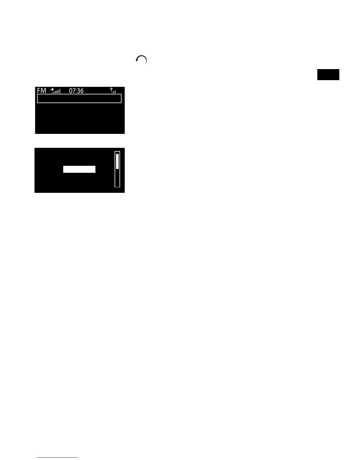 sorgente audio. Ruotare la manopola Select per cercare la stazione FM precedente o successiva.