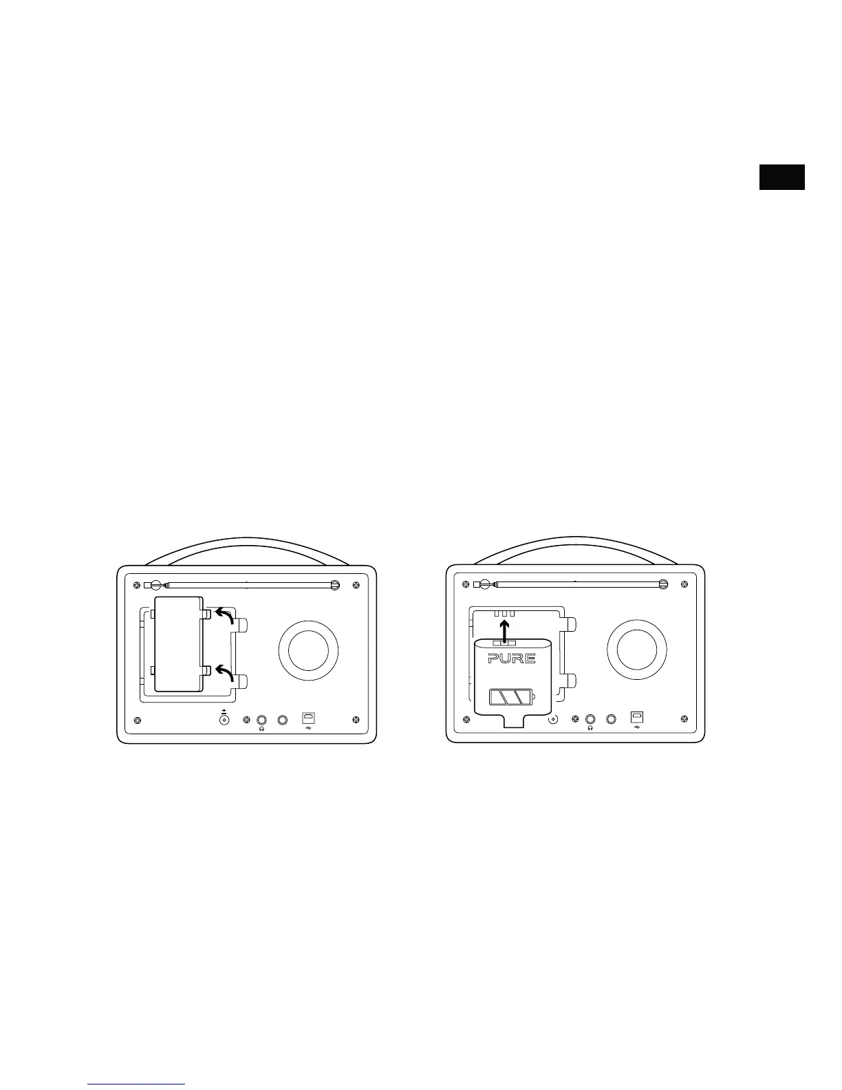2. Sul retro della radio Evoke H4, premere i due clip presenti sul coperchio della batteria per toglierlo.