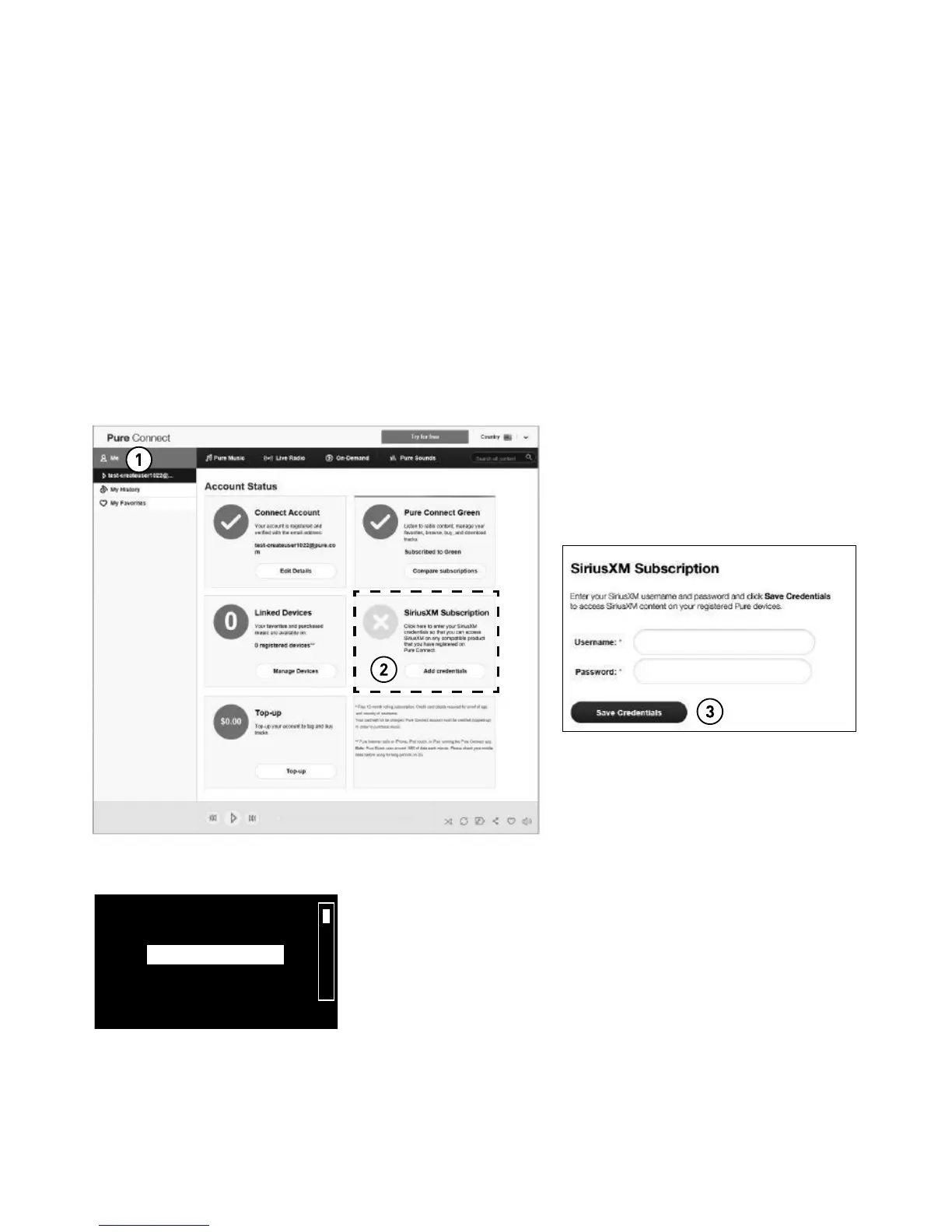 2. Haga clic en el botón Add credentials (Agregar credenciales) en el panel SiriusXM Subscription