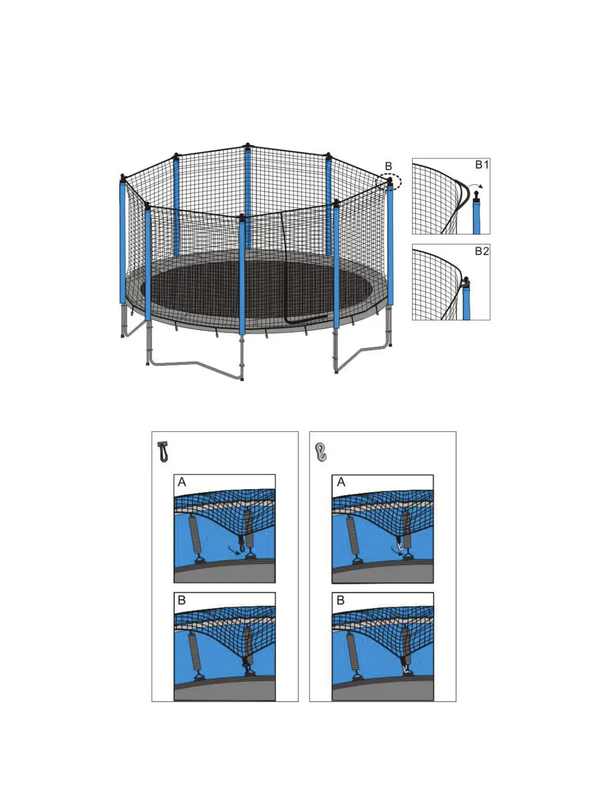 B. Make sure you note that the sewn edge with the elastic bands w/hooked-ends is the bottom of the net.