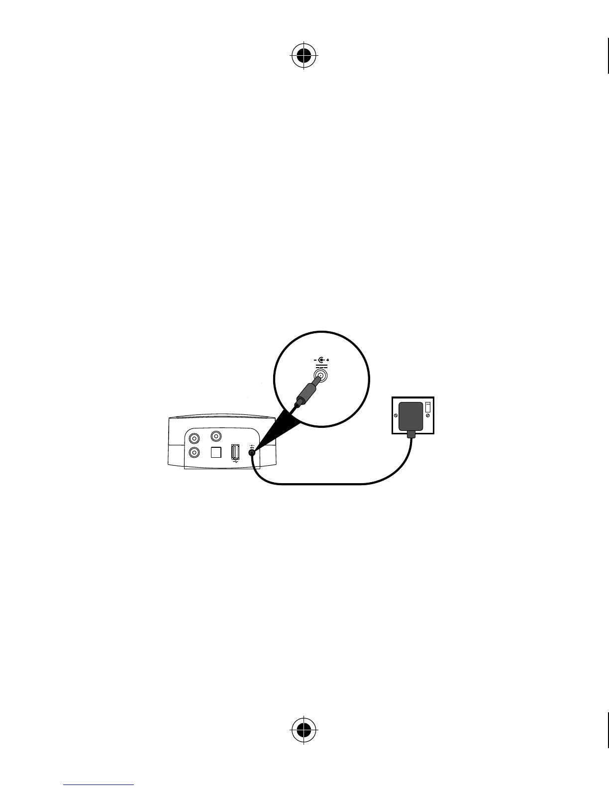 2. Insert the connector of the mains power adapter into the socket on the