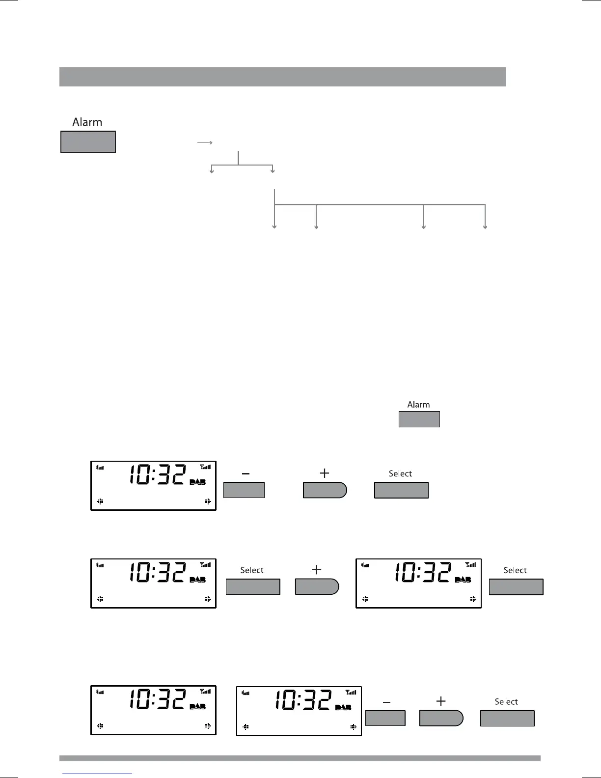 2. Utilisez les touches +/− et Select pour choisir entre l'alarme 1, 2, 3 ou 4.