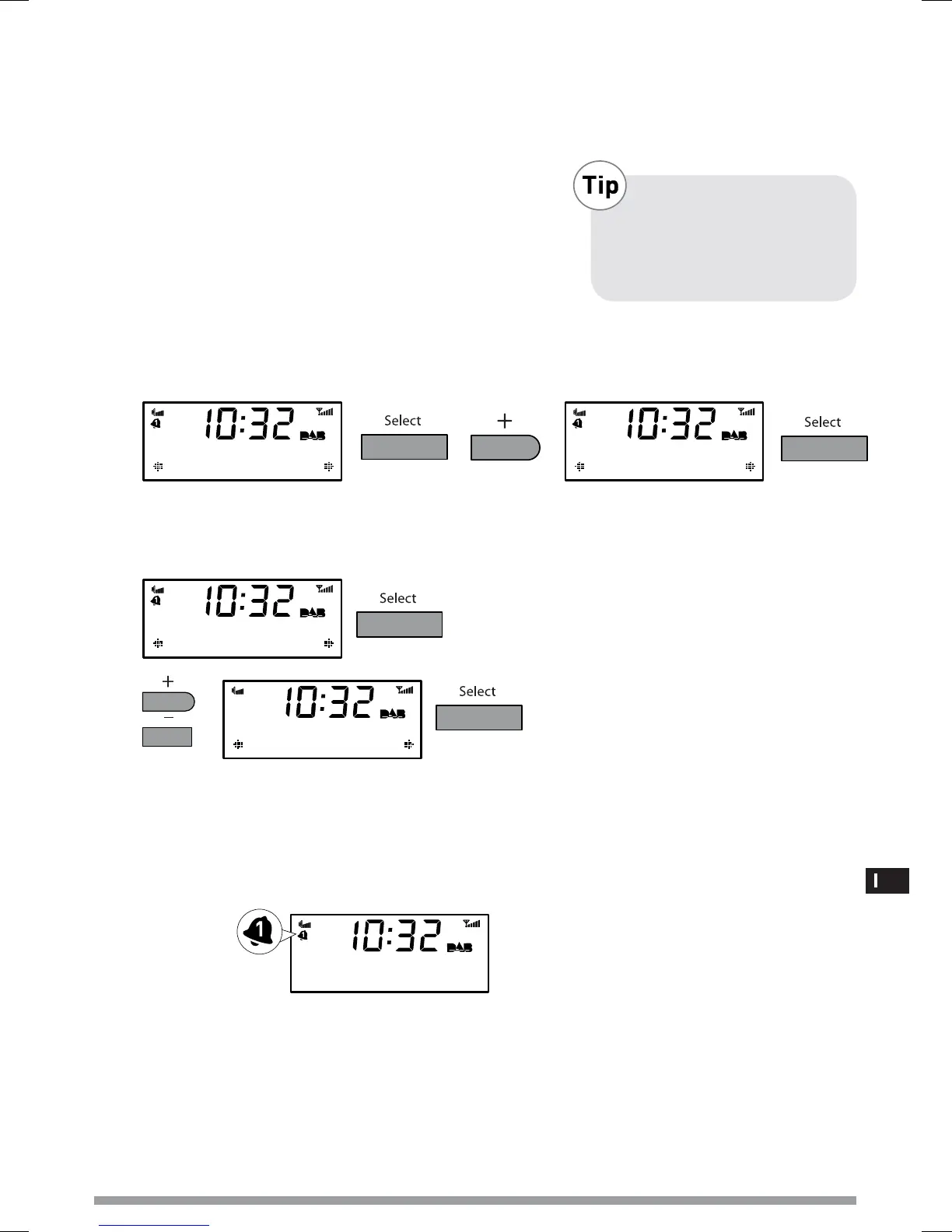 7. Infine, solo nel caso delle sveglie radio, impostare il volume scegliendo un livello da 1 a 20