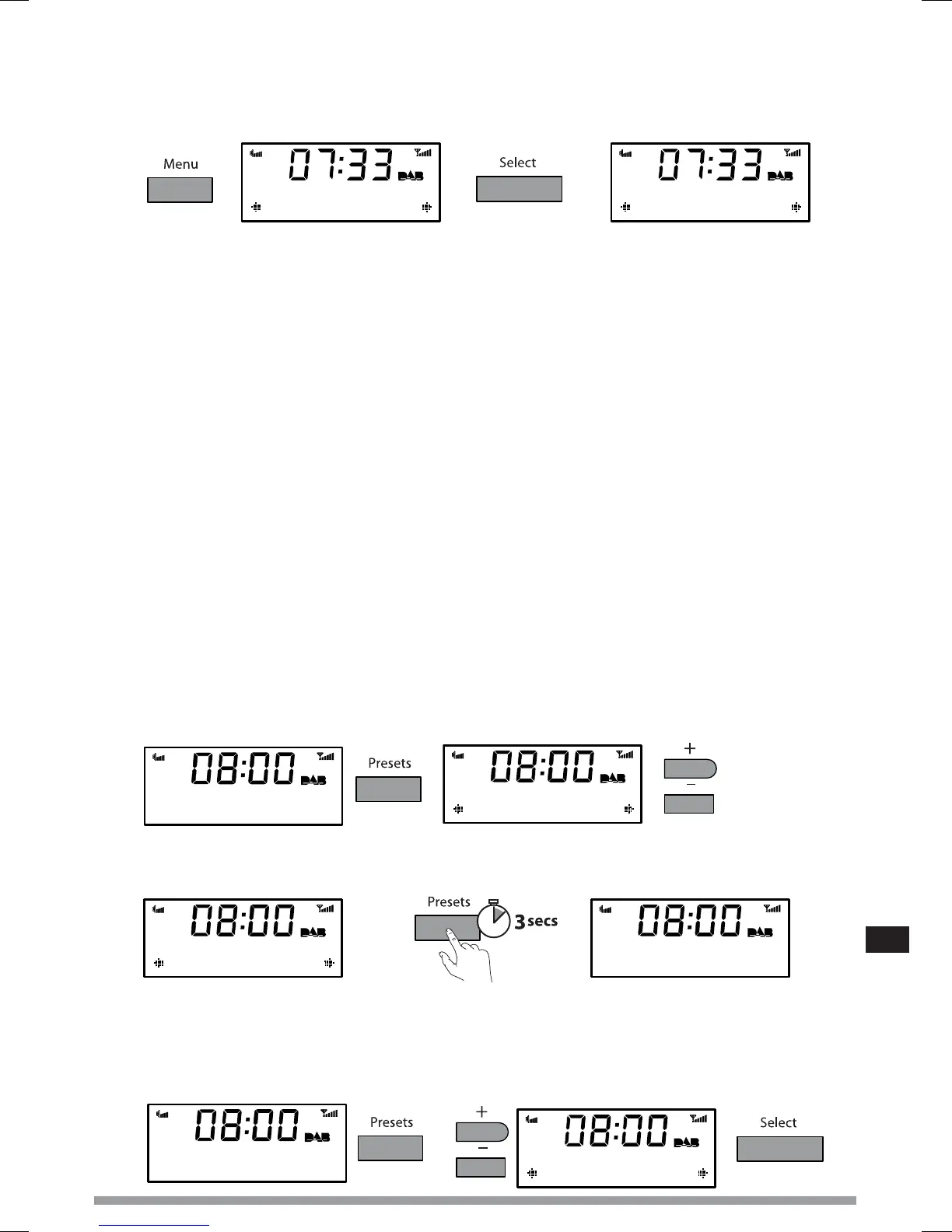 1. I DAB eller FM skal du trykke på Menu knappen, og derefter på Select for at få adgang til