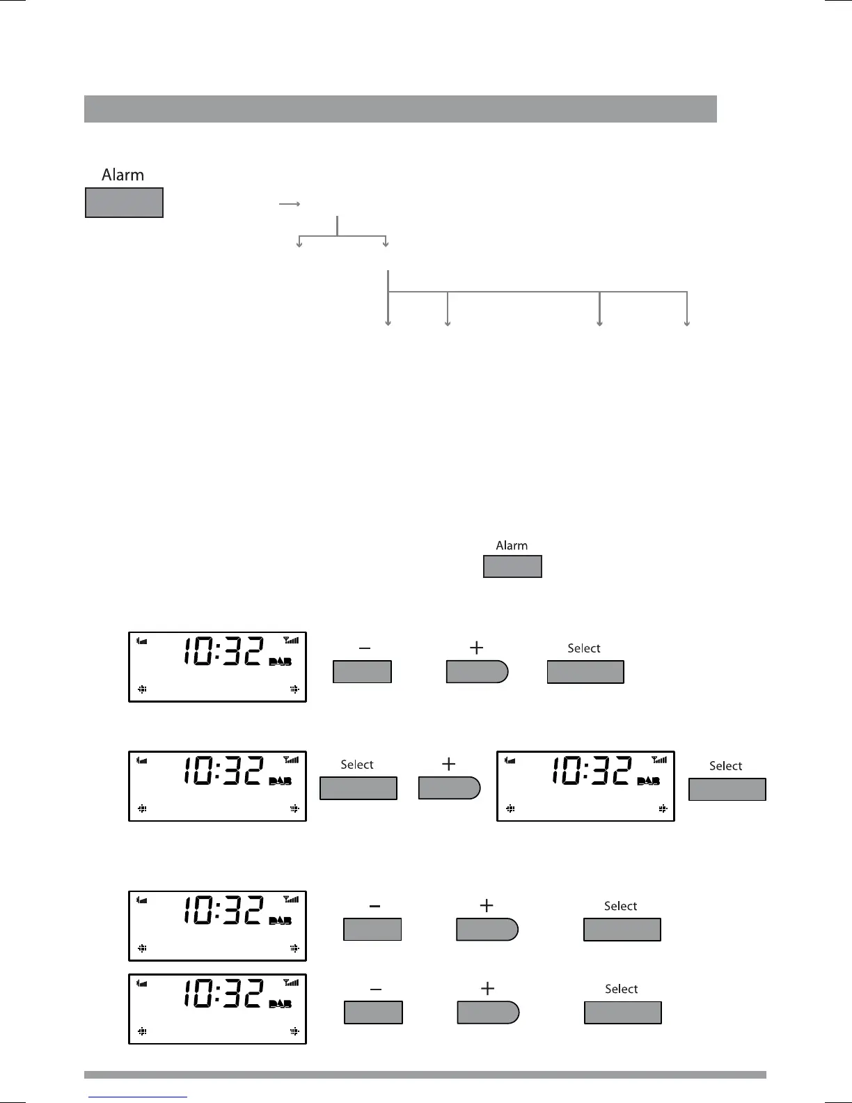 2. Choose either Alarm 1, 2, 3 or 4 using +/− and Select.