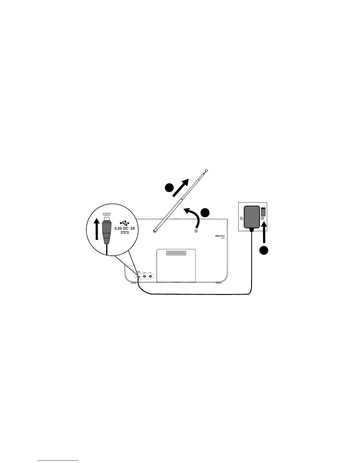 • Trek de antenne los en trek deze helemaal uit (stappen A en B).