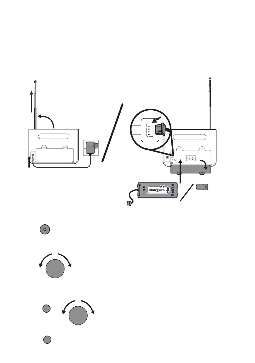 1. Etendez l’antenne télescopique entièrement. Branchez l’appareil à la prise de courant