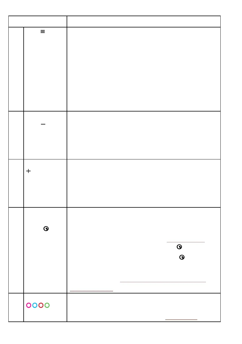 • In FM radio, press to tune down by 0.05MHz. Press and hold to