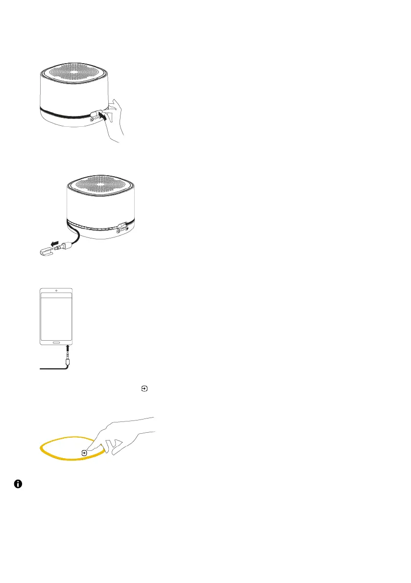 4.Press the Source button to change to auxiliary input, indicated by the light ring