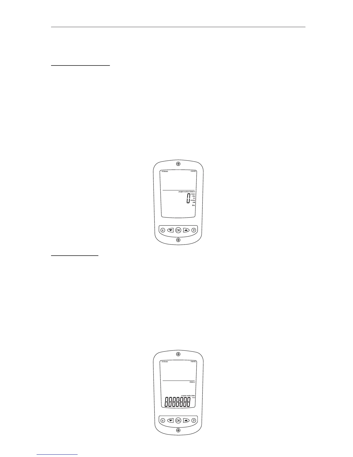 Press the P button once to set distance workouts / twice to set time workouts