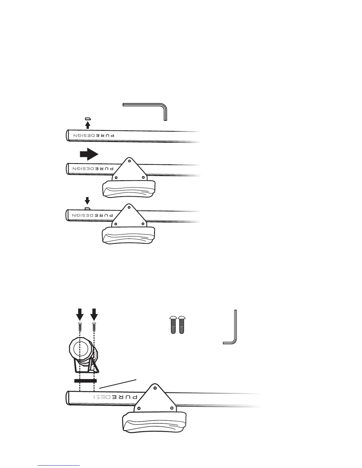 onto the rail (front/wider end) rst. With the Allen key, replace the stops back