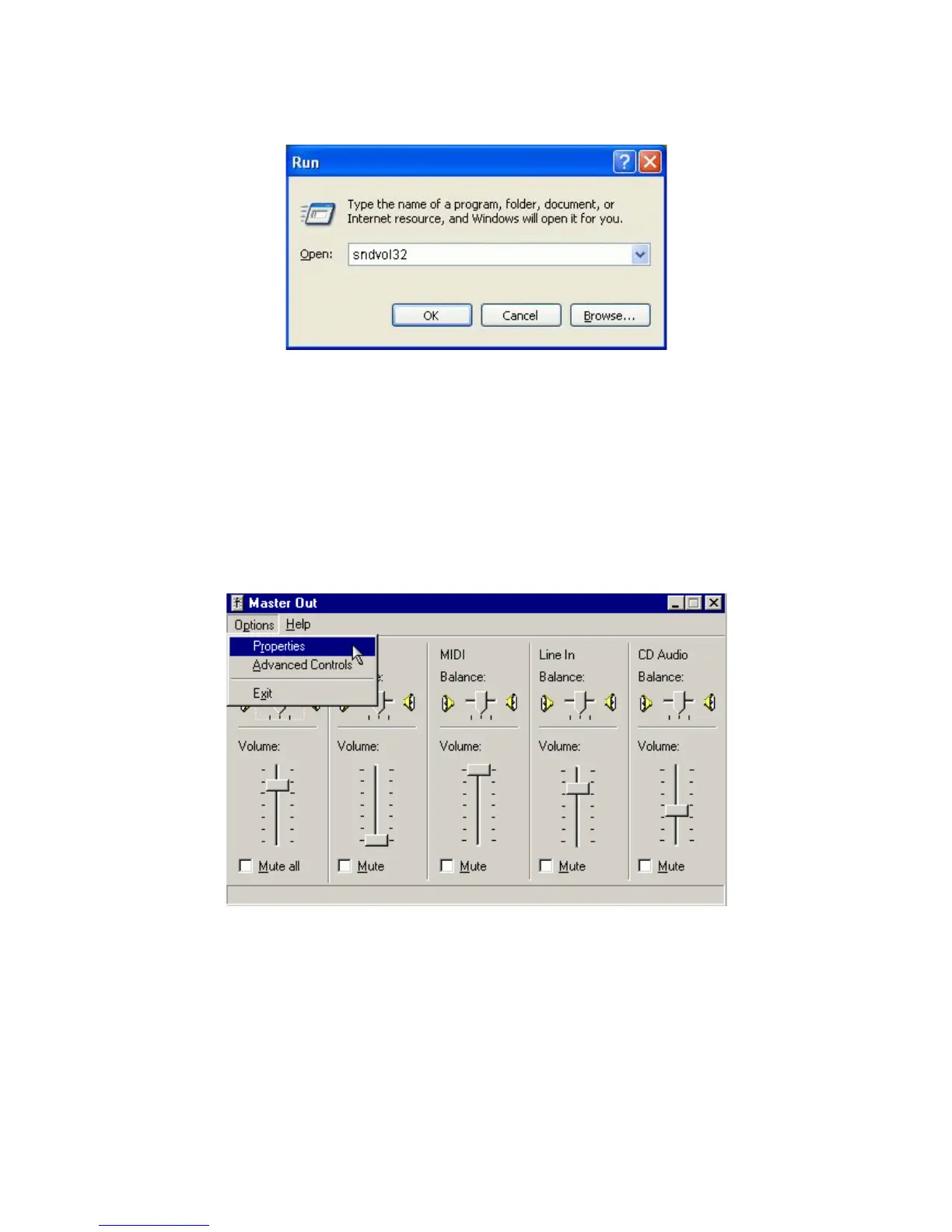 The Windows mixer will be shown. If more than one soundcard is installed in your