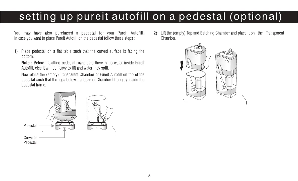 Pureit autofill - Setting up on a Pedestal